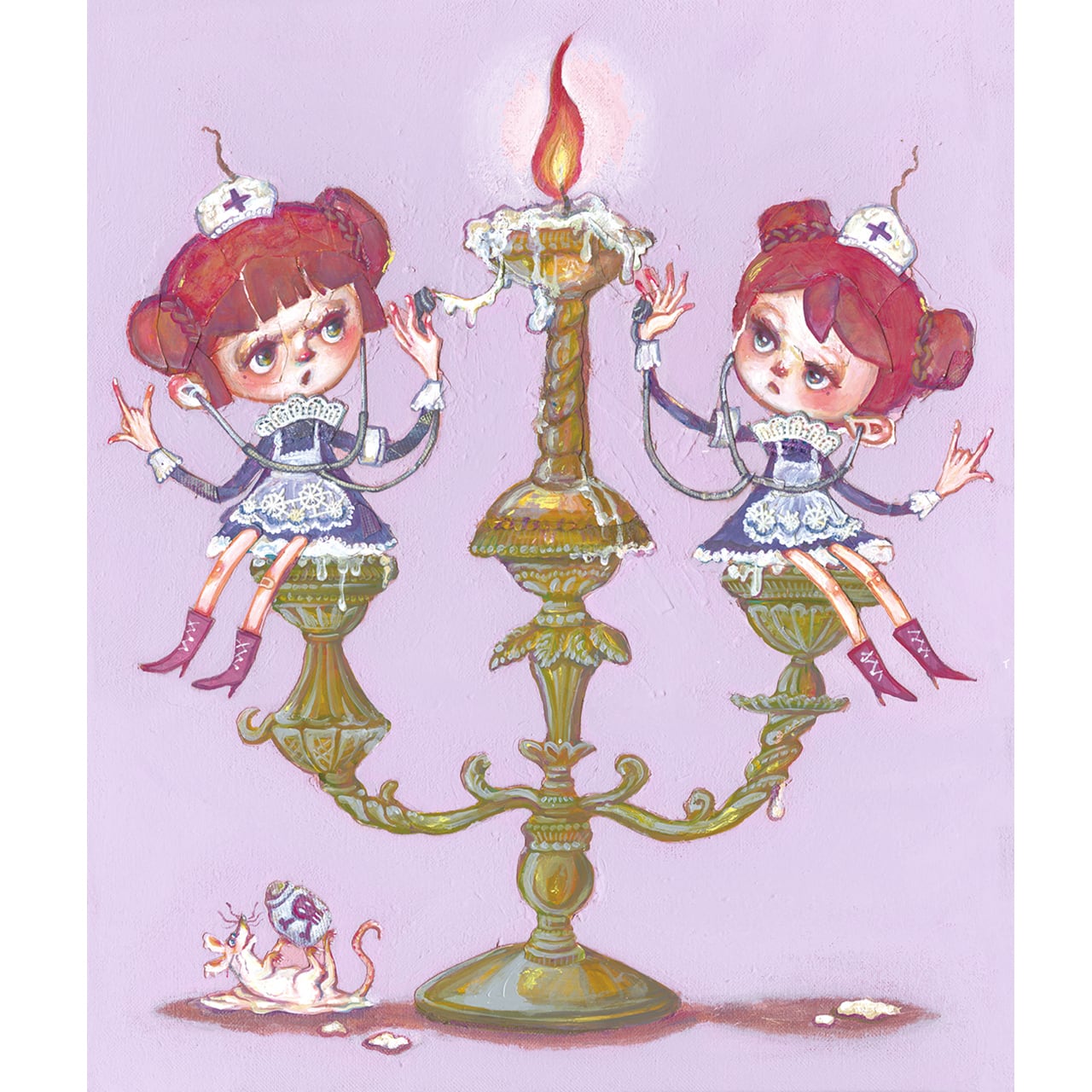 可愛らしい二人のナースが見守るのは、大切な誰かの心の灯火かもしれません。