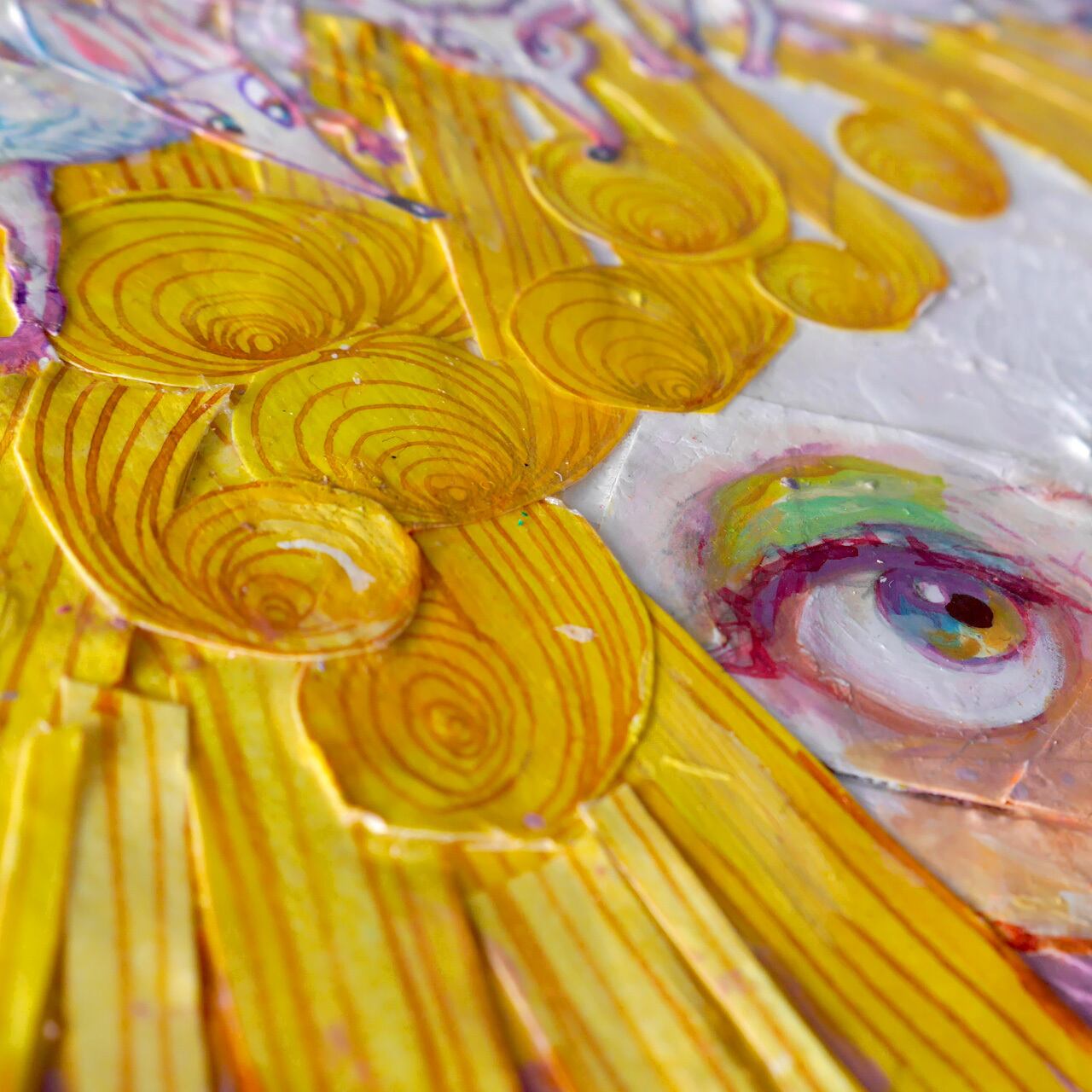 珍しいハート型のキャンバスに、金髪巻き髪の女の子