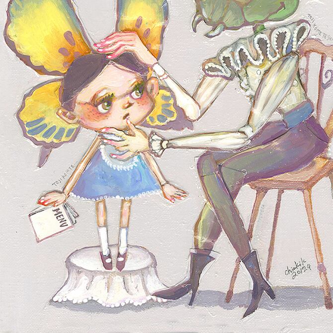 カマキリに蝶の女の子がなんともインパクトのあるビジュアル!